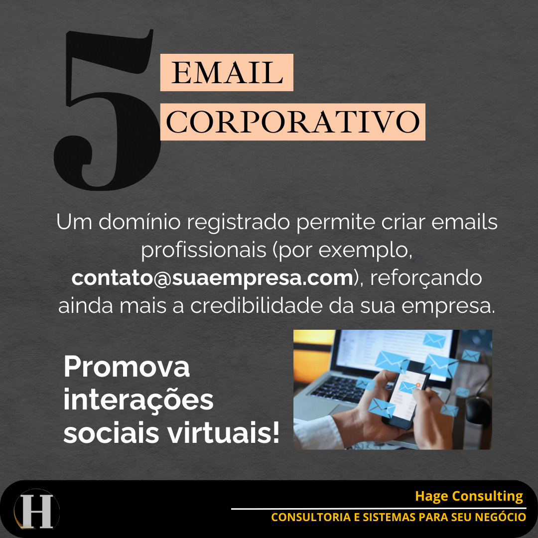 Com um domínio próprio, você pode criar e-mails corporativos (exemplo: contato@suaempresa.com.br. Isso transmite ainda mais credibilidade e profissionalismo, reforçando a imagem de uma empresa consolidada e confiável.